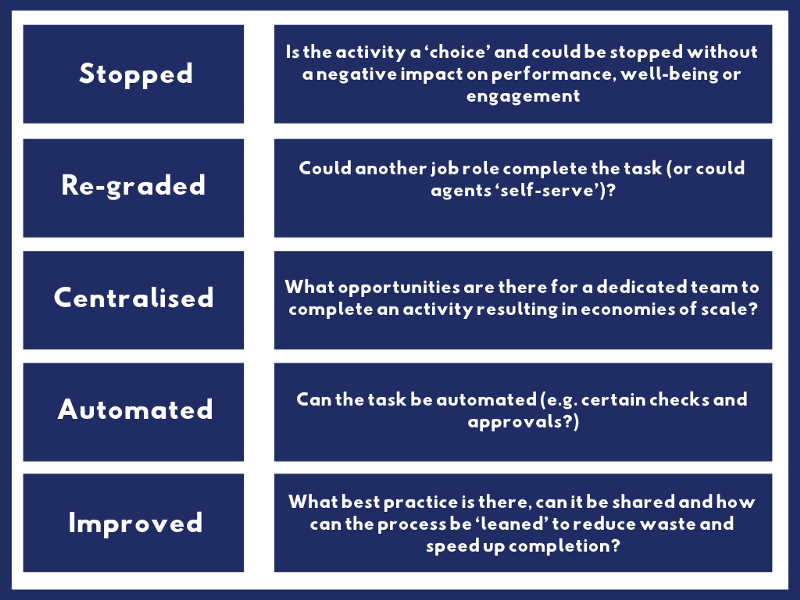 These wider tasks are introduced into the team leader role, hardly ever through design but through incremental increases in the ask of the team leader (MI returns, checks/ approvals, HR and finance administration) — this crowds out the available time on driving increased performance. Worse still these activities and their time burden are often hidden or believed to be ‘essential’.
